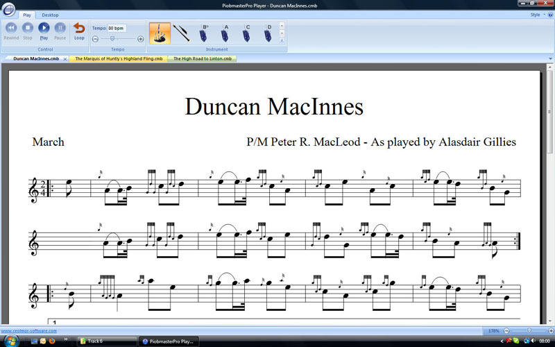 To enhance the user interaction with this eMusicBook, Ceol Mor haveĀ also integrated the new Windows 7 PiobMasterPro Player tutoring software into it, thus allowing the user to load listen and learn the selected tune at their own speed.
